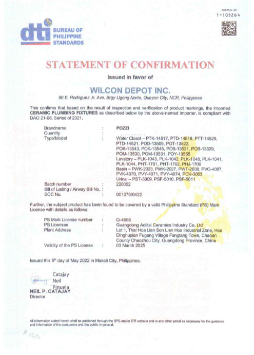 Material : Vitreous China
