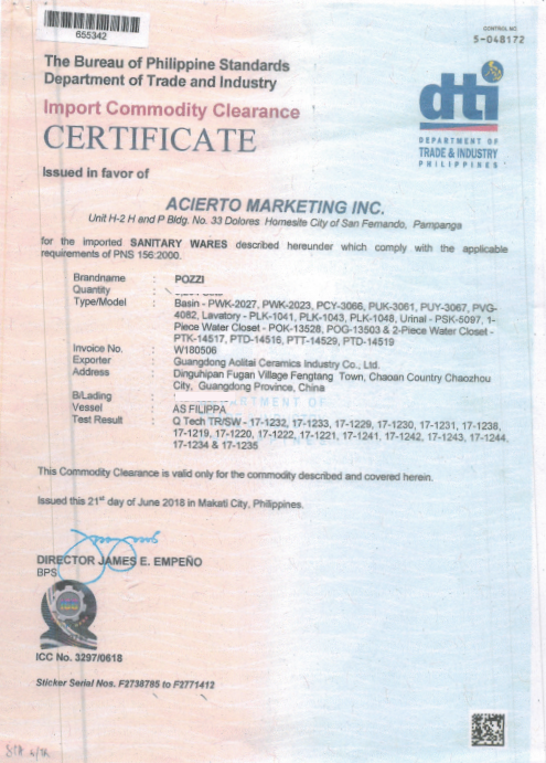Material : Vitreous China