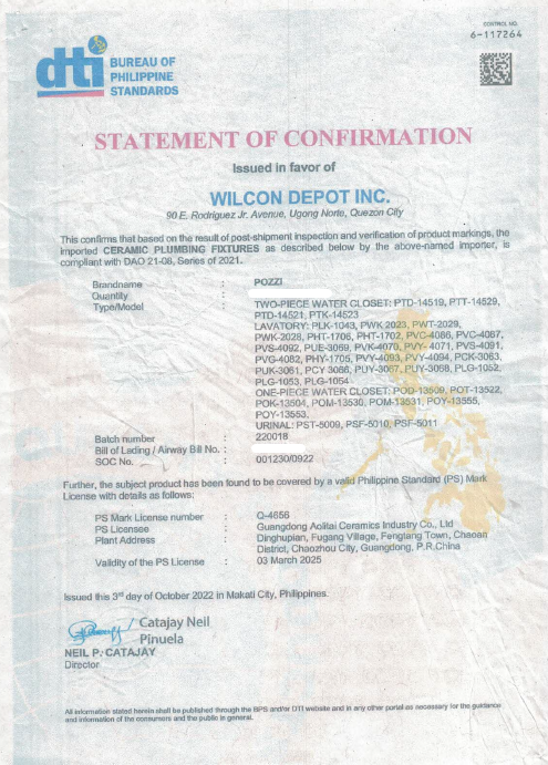 Material : Vitreous China