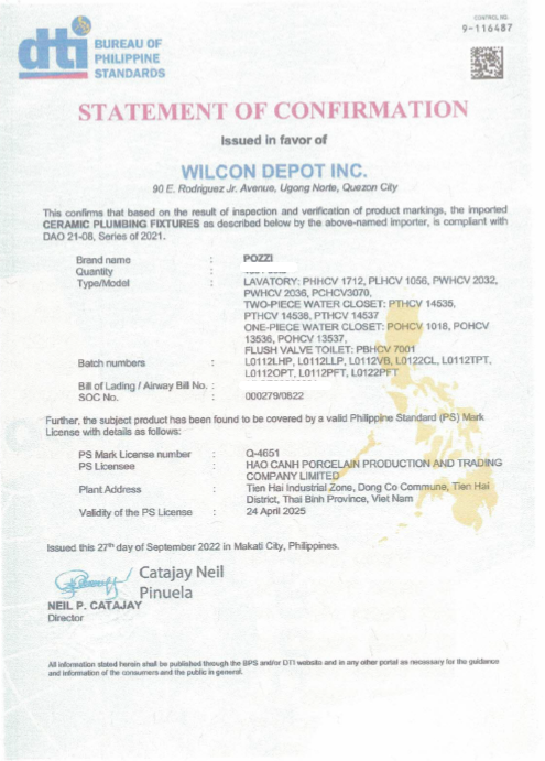 Material : Vitreous China